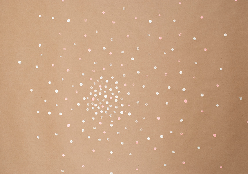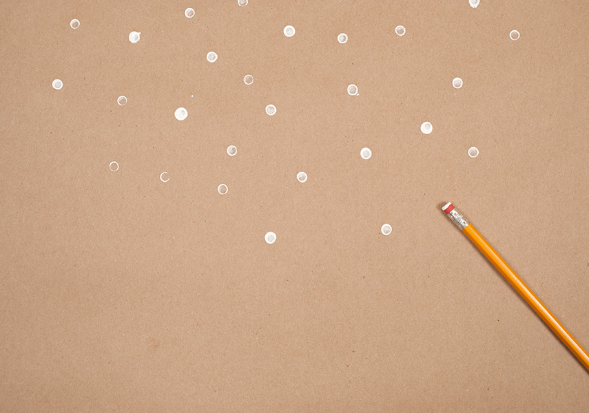 Start with a sheet of natural kraft paper. Take your pencil eraser and dip it into paint. Gently press eraser onto paper.