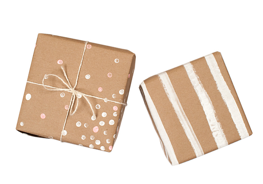 Let the paper dry and then wrap gifts. Add a bow, ribbon, or twine to finish the look!