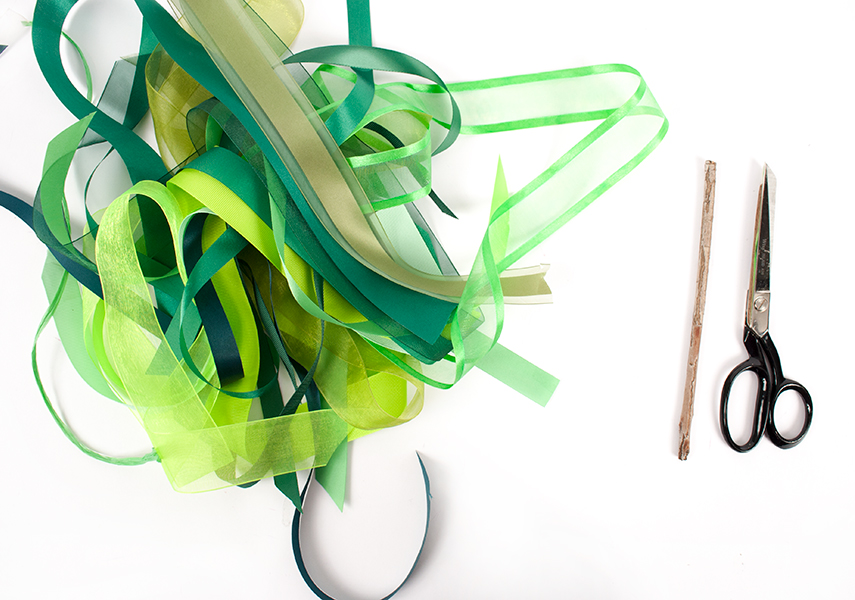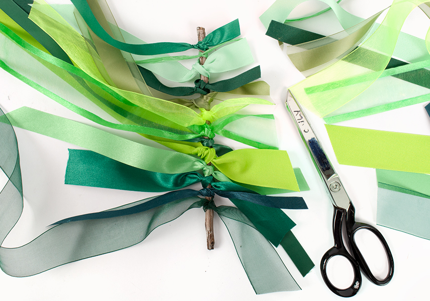 Cut Sides Of Ribbon On An Angle, Starting Wide At Bottom, Narrowing At Top To Form A Tree Shape.